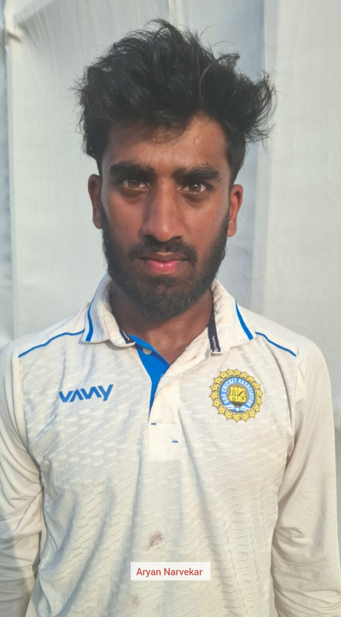 Margao Cricket Club, second innings – from 5 without loss in 2 overs to all out 289 in 60.2 overs (Aryan Narvekar 154, Chigurupati Venkata 41, Rudresh Sharma not out 21, extras 18, Shubham Tari 4-74, Felix Alemao 3-33, Darshan Misal 3-68), Chowgule Sports Club, second innings – 145 for 4 in 39.4 overs (Gauresh Kambli 55, Pradnesh Gaonkar not out 53, Madhur Yadav 29, extras 1, Rudresh Sharma 2-54, Anuj Yadav 2-71), Player of the Match: Shubham Tari