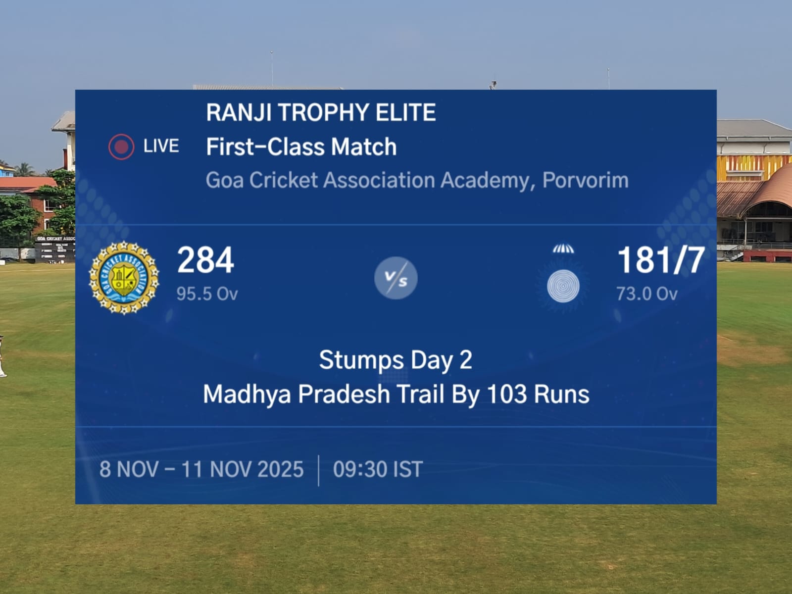 Goa will hope to wrap up the remaining three MP wickets quickly on Monday morning and get to their first target of first innings lead, before building on the prospect of an outright victory to hold their top position in Elite Group B. Scorecard👇